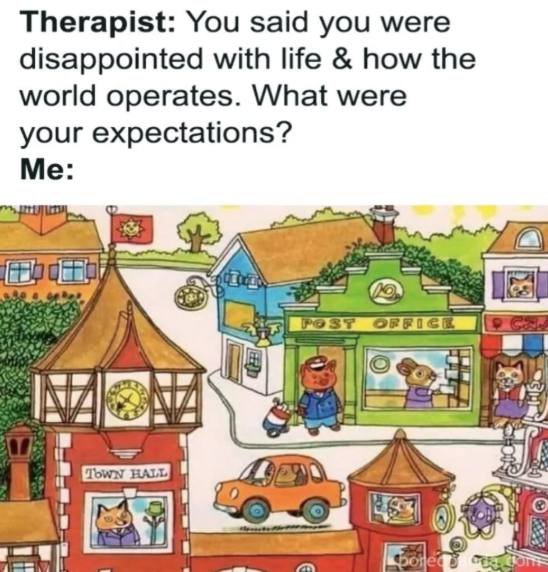 A “Richard Scarry book” society of industrious, cooperative individuals.