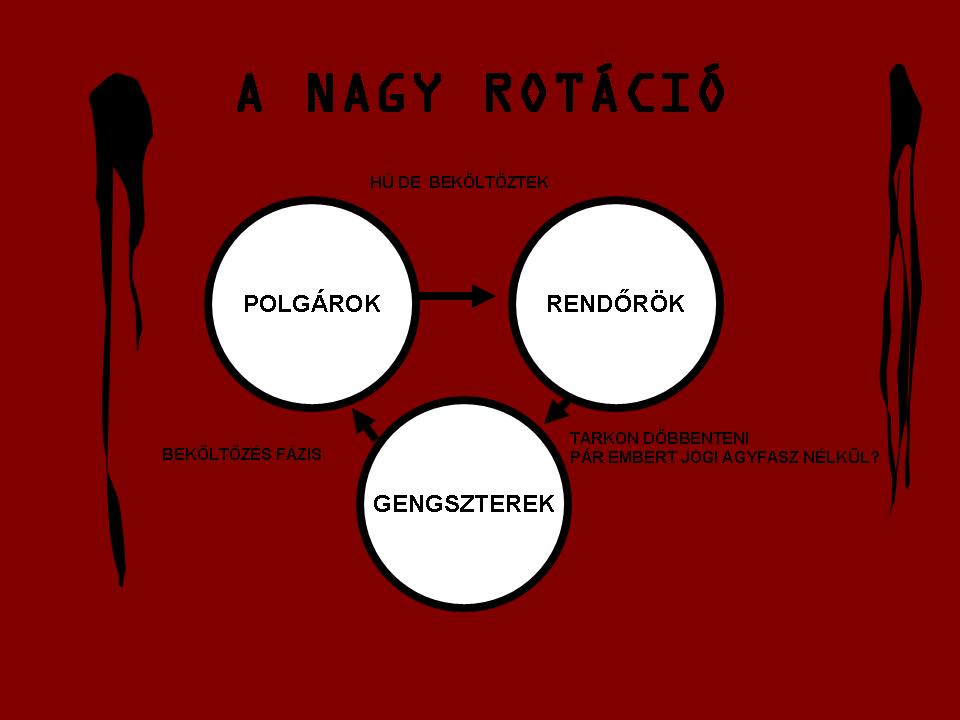 „ALLITOLAG: NEM A rendőrség rendíthetetlen ígérete, hogy a magyarok természetüknél fogva nem basznak ki egymással, ezért a bizalom jegyében diszkréten teleszórjuk Budapestet (KEMEKKEL) megfigyelőkkel, hogy aztán teljes meglepetéssel lecsaphassunk azokra a néhány makacs súlyos bűnözőre, akik mégsem értették meg az üzenetet.” BLACK ORCHID