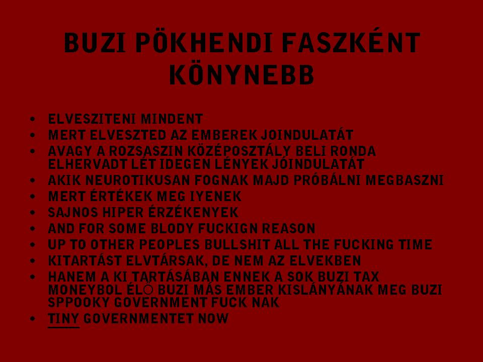BUZI-E VAGY? GIGA PRIDE-OT MAGYARORSZÁGRA, ÜNNEPELJÜK A FERDEKERESZTŰEKET, ÉS VÉDJÜK MEG A BUZIKAT! VAGY VERJÜNK NŐKET? LOFASZT. NEM ERŐSZAK A MEGOLDÁS, HANEM A DIPLOMÁCIA. DI-PLO-MA-CIA? KÉRDEZTE SEBHELYES FEJŰ, ROSSZARCÚ KARAKTER A MERCENARY-BEN, HOGY KI A FASZ IS VAGYOK ÉS MIÉRT CAPS-BEN FOGALMAZOK MEG MINDENT?