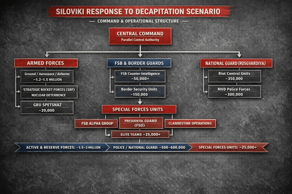 CLASSIFICATION: TOP SECRET / FOR OFFICIAL VD EYES ONLY TO: VD (Deputy / Director-level Command)FROM: Military Intelligence Analysis DivisionDATE: 08 March 2026SUBJECT: Assessment of Siloviki Capabilities and Combined Forces Response to Potential Decapitation Event 1. Situation Overview Intelligence indicates that any foreign or internal decapitation attempt targeting Moscow-based leadership would trigger rapid activation of multiple…