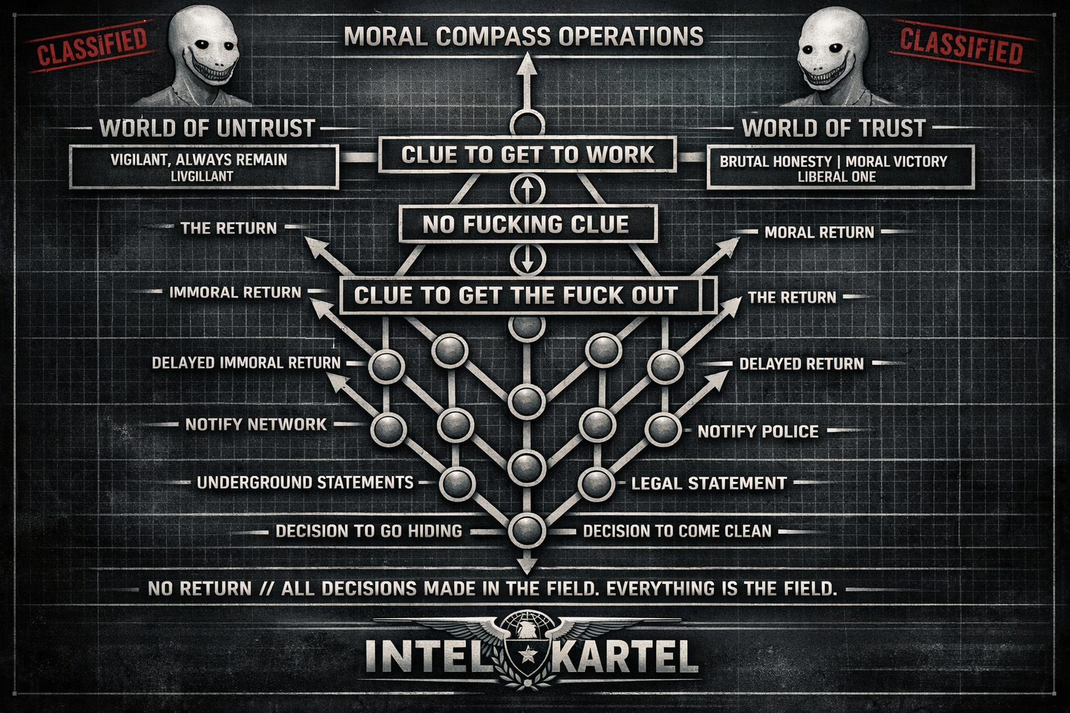 CLASSIFIED // BLEAK HUMOR // EYES ONLY Subject: Handler Networks, Escalation Cycles, and the Cost of Winning Summary:Handler networks have evolved from messy coordination hubs into self-consuming ecosystems. Their stated goal is control. Their consistent outcome is attrition—of people, trust, and eventually themselves. Observed Pattern:When pressure rises, networks don’t simplify—they harden.They close ranks, elevate loyalty…